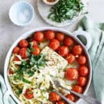 Bagt feta med tomat, basilikum og pasta