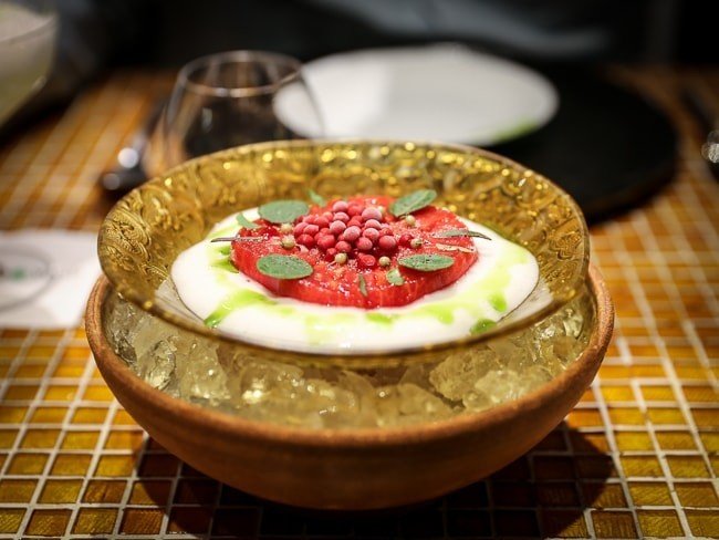 Service, omgivelser, mad – ja, det hele – var i top. Stedet har skam også erhvervet sig en Michelinstjerne, og det kan heller ikke undre efter et besøg. Du kan enten vælge at gå a la carte eller tage den store menu, som er et udpluk af retterne fra a la carte. Nogle ting kender du måske fra det mexicanske køkken, fx tacos der her var med helstegt pattegris, men du vil med næsten med garanti prøver nye og spændende sammensætninger i de kunstfærdigt anrettede serveringer.