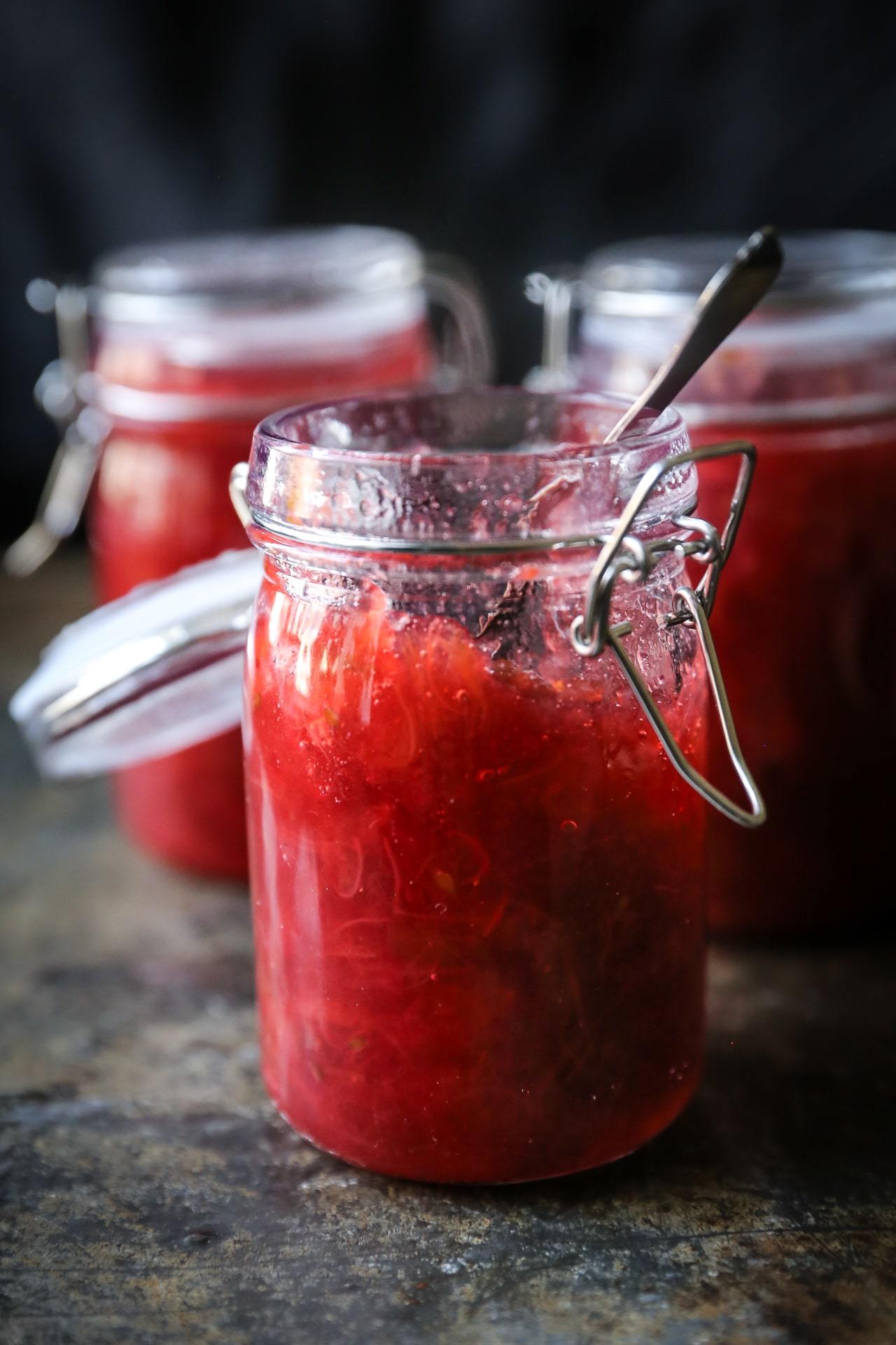 Rarbarbermarmelade med jordbær og stikkelsbær
